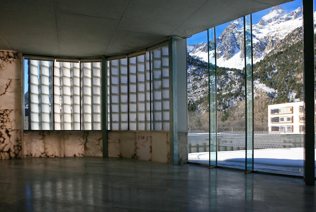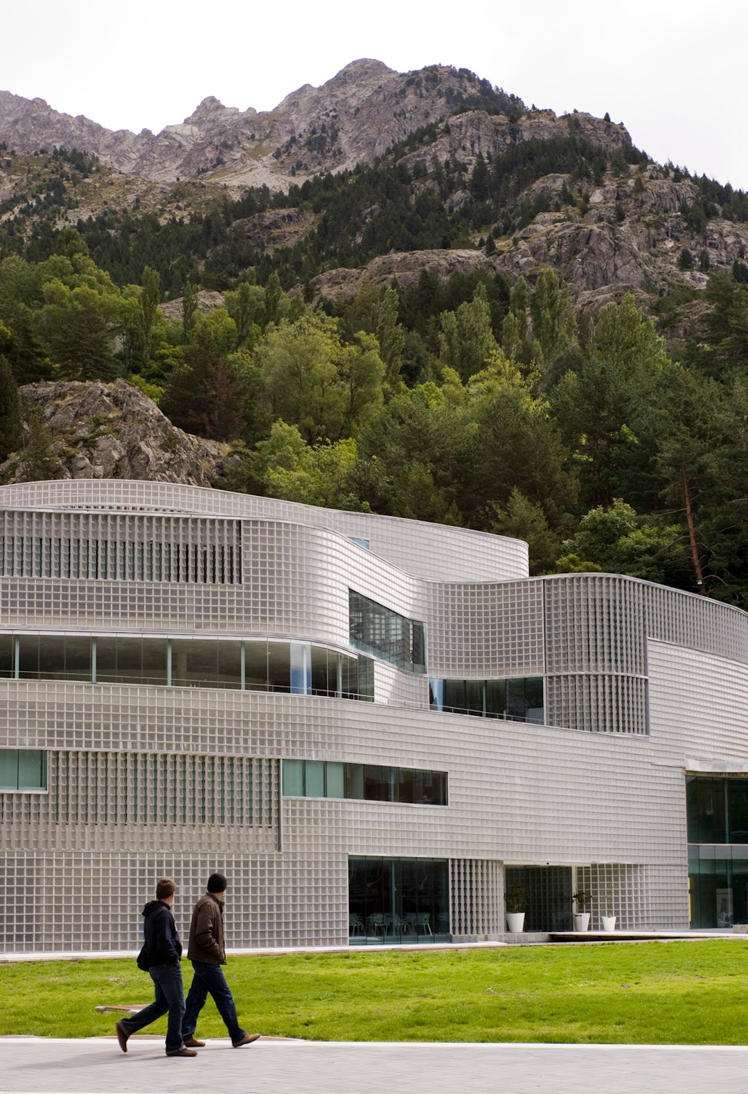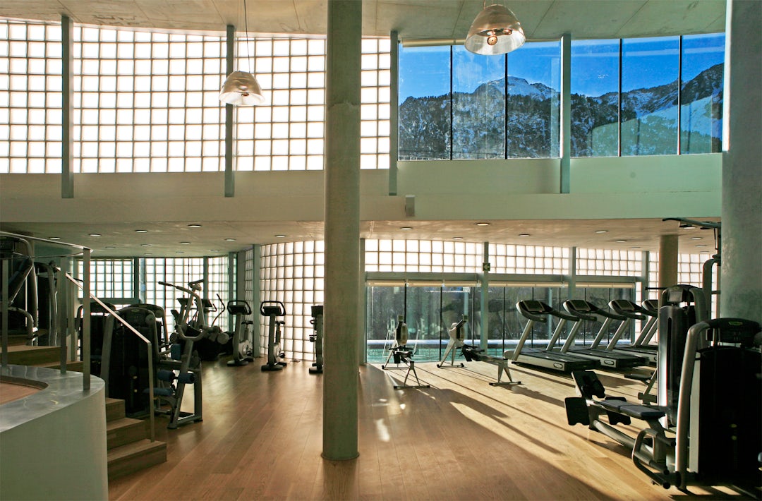 Located on the side of a snow-capped mountain in the Valle de Tena of Aragon, the 91,500-square-foot thermal bath and spa was designed as an architectural mediator between the site’s natural setting in the Pyrenees and its local urban context as part of the Balneario de Panticosa — a famous resort that attracts tourism to the area year round. The compact project is set between an existing church and a reconstructed hotel and features a series of curving walls created top-to-bottom in custom-made glass blocks.