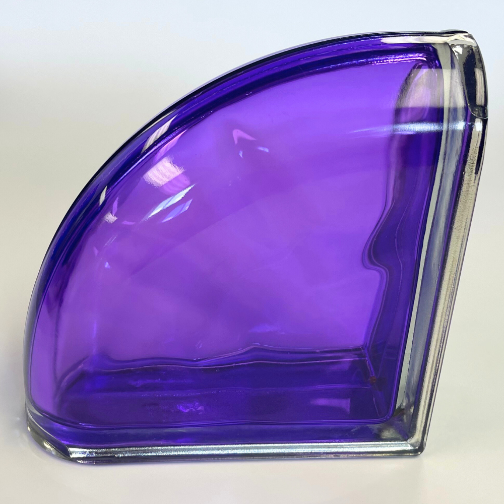 The Q19 Indaco Curvo Double End Block Wave features a soothing wave pattern that will calm your spirit and refresh your mind. Its light, cheerful color and metallic finish create a whimsical shine. Whether used as an accent piece or in a full glass block wall, this block is designed to help you unwind and leave your worries behind.
