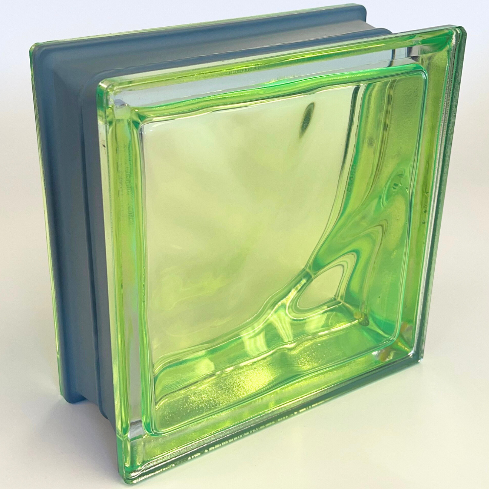 Q19 Muschio Wave is a vibrant green-colored glass block that adds a pop of color to any space, whether light or dark. With a hue reminiscent of a highlighter, you can infuse your environment with energy and brighten up any room with its injected color and metallic edge. Whether used as a focal point or part of a larger mosaic design, this color is always a perfect choice.